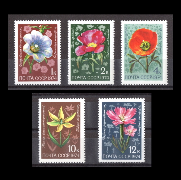 - ■ソビエト切手 1974年 花 / フラワー 5種完 / ソ連・ロシア