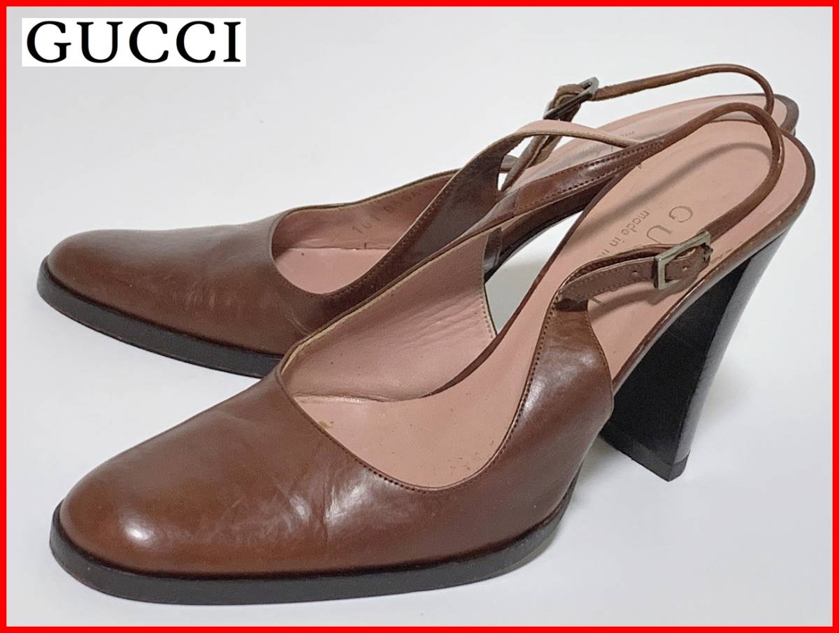- 即決 GUCCI グッチ 34.5≒21.5cm パンプス サンダル ブラウン レディース jtu