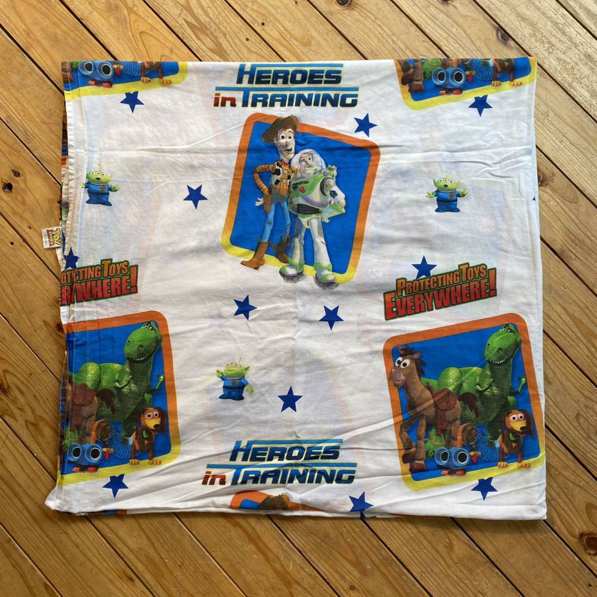 - USAヴィンテージ ベッドシーツ トイストーリー リメイク生地 素材 フラットシーツ ディズニー ピクサー ウッディ アメリカ仕入 総柄 B1697