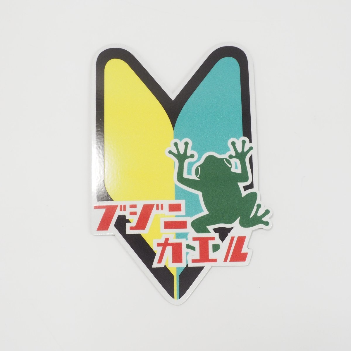 > (反射 マグネット)ブジカエル 初心者マーク グリーン ステッカー カエル お先にどうぞ 交通安全 安全運転 免許 シール 注意