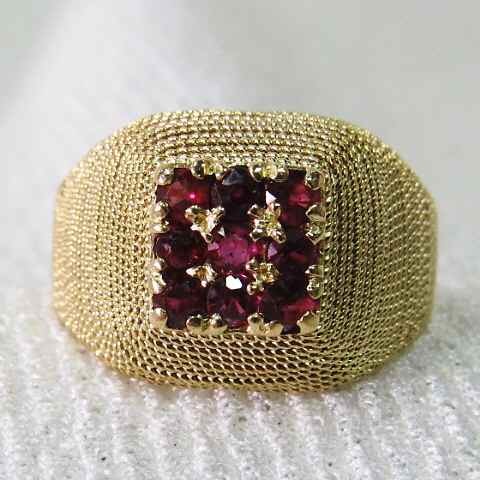 > 【値下げ交渉は質問欄より】アンティークでモード調デザイン☆ルビー☆18K製☆イタリアンデザインリング☆ピカピカ指輪#13,5号
