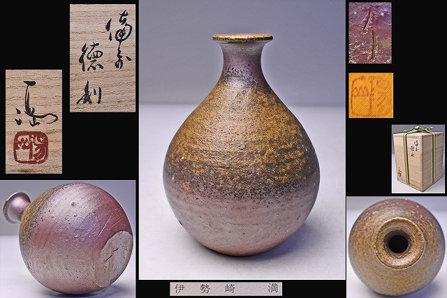 > 伊勢崎満 ★ 備前 徳利 ★ 共箱 共布 栞 ★ 父: 伊勢崎陽山 / 実弟 : 伊勢崎淳 ★ 緩やかな素晴らしい造形の逸品 ★ 酒器 ★ 検 伊勢崎卓