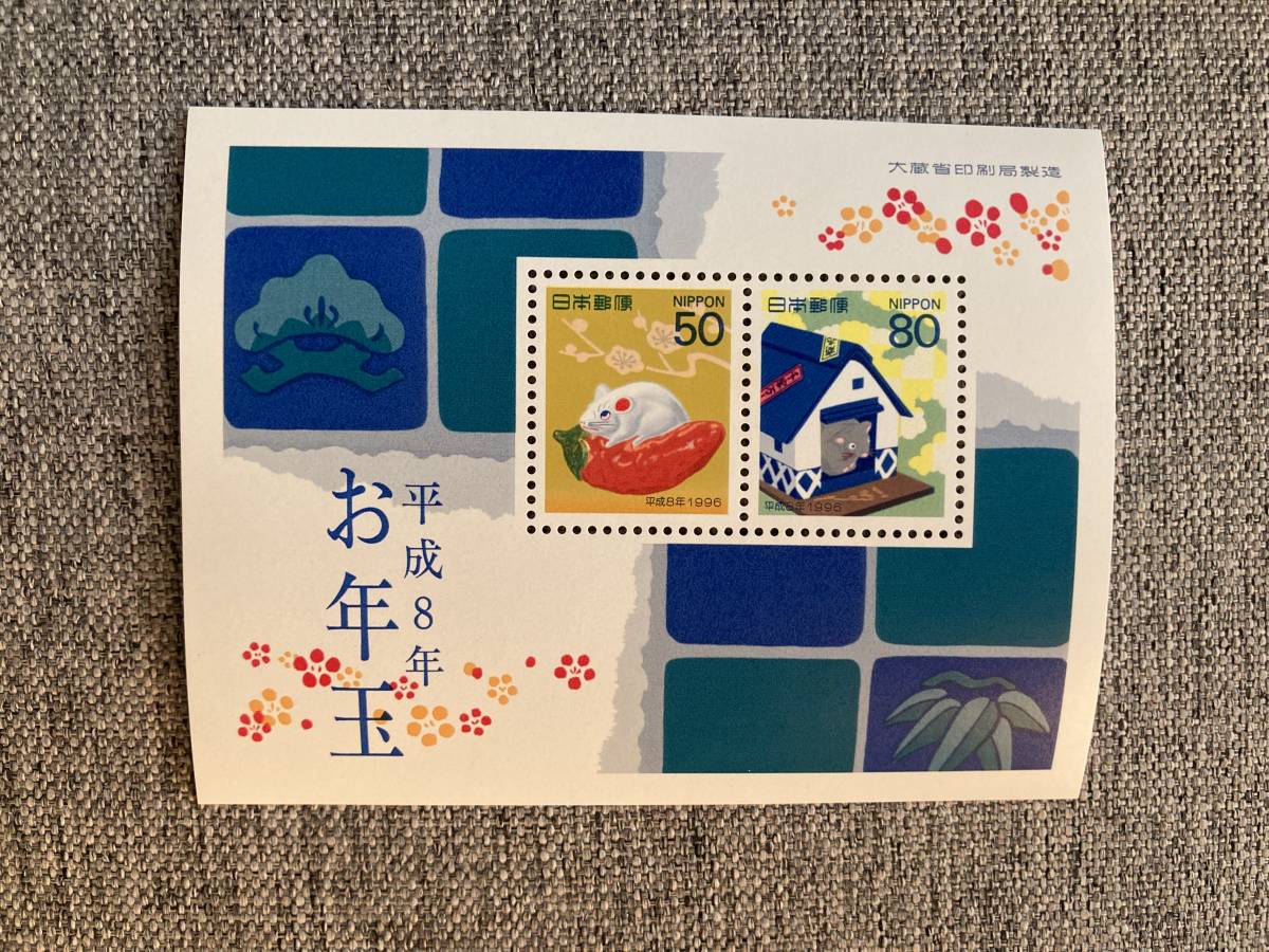 > ★未使用 お年玉 郵便切手 年賀はがき当選 平成8年 1996年 唐辛子乗りねずみ(堤人形) 米倉ねずみ(薩摩首人形) 子年 50円80円 ミニレター