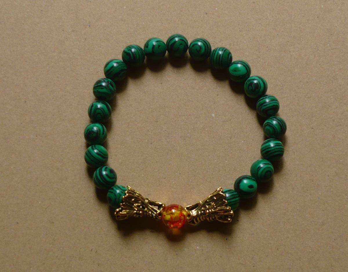 - 送料無料☆開運 パワーストーン ゴールド緑双頭龍グリーンドラゴンブレスレット 瑠璃玉付き