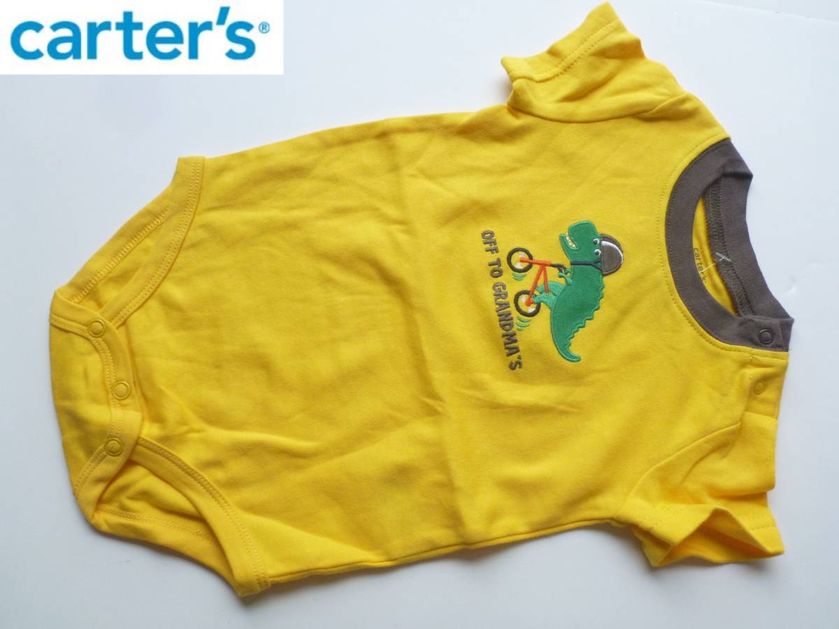 > 新品 carter's カーターズ ★黄色×怪獣アップリケ 半袖 Tシャツ ボタン止め有 9m…身長70㎝、7.4-9.2㎏