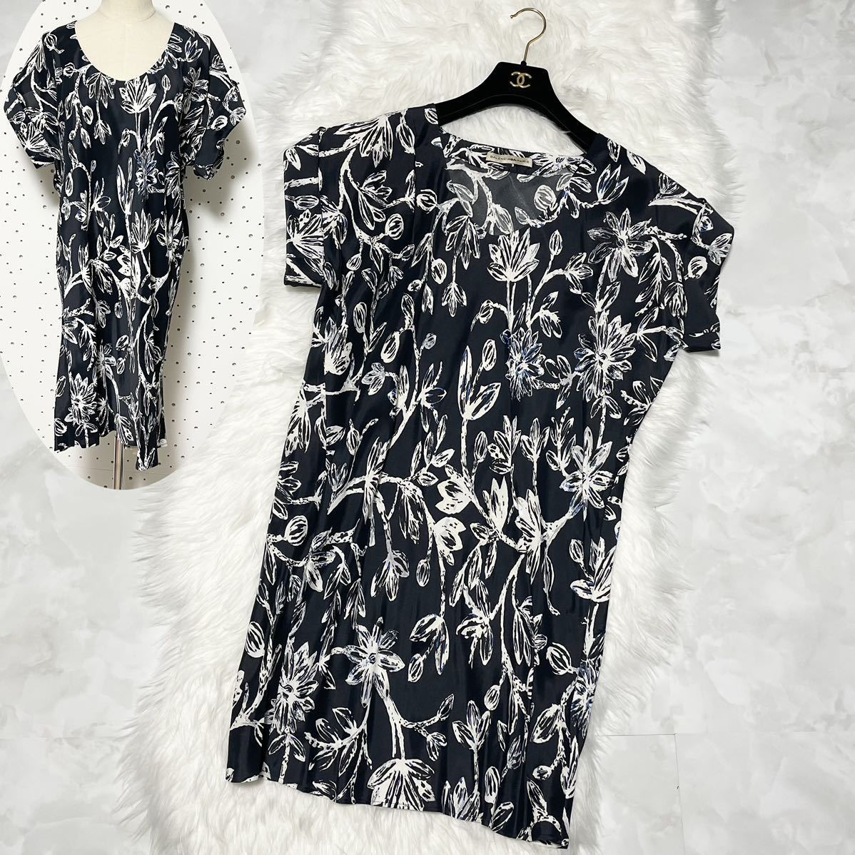 - 本物 バレンシアガ 花柄 フラワー フローラル 半袖 ワンピース ドレス 38 ブラック×グレー系×ブルー BALENCIAGA 大きいサイズ