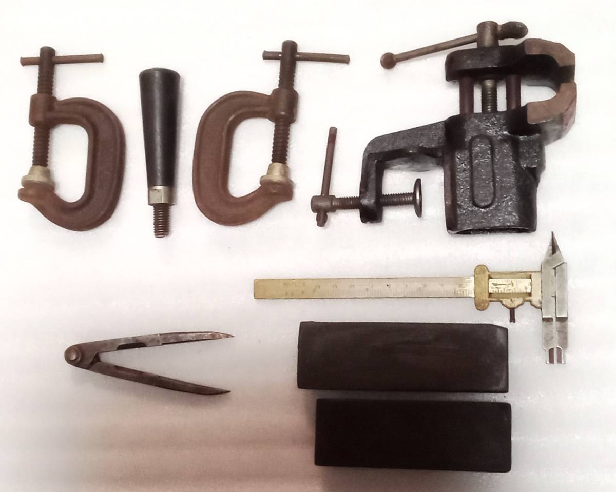 - ★ 金工師宅の道具箱からの初だし 彫金道具 砥石 万力 ノギス他 細工道具 金工道具