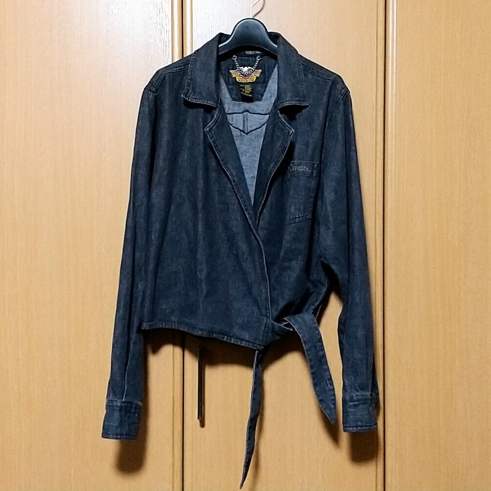 - HARLEY DAVIDSON デニム テーラードジャケット シャツ レディース ブラックデニム L 香港製 黒 Gジャン ハーレーダビッドソン