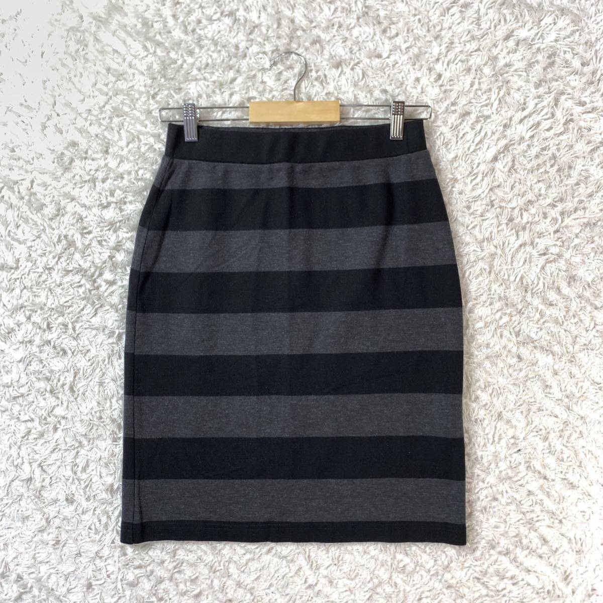 > スピックアンドスパン タイトスカート ひざ丈スカート ブラック 黒 グレー ボーダー ウール YA3594