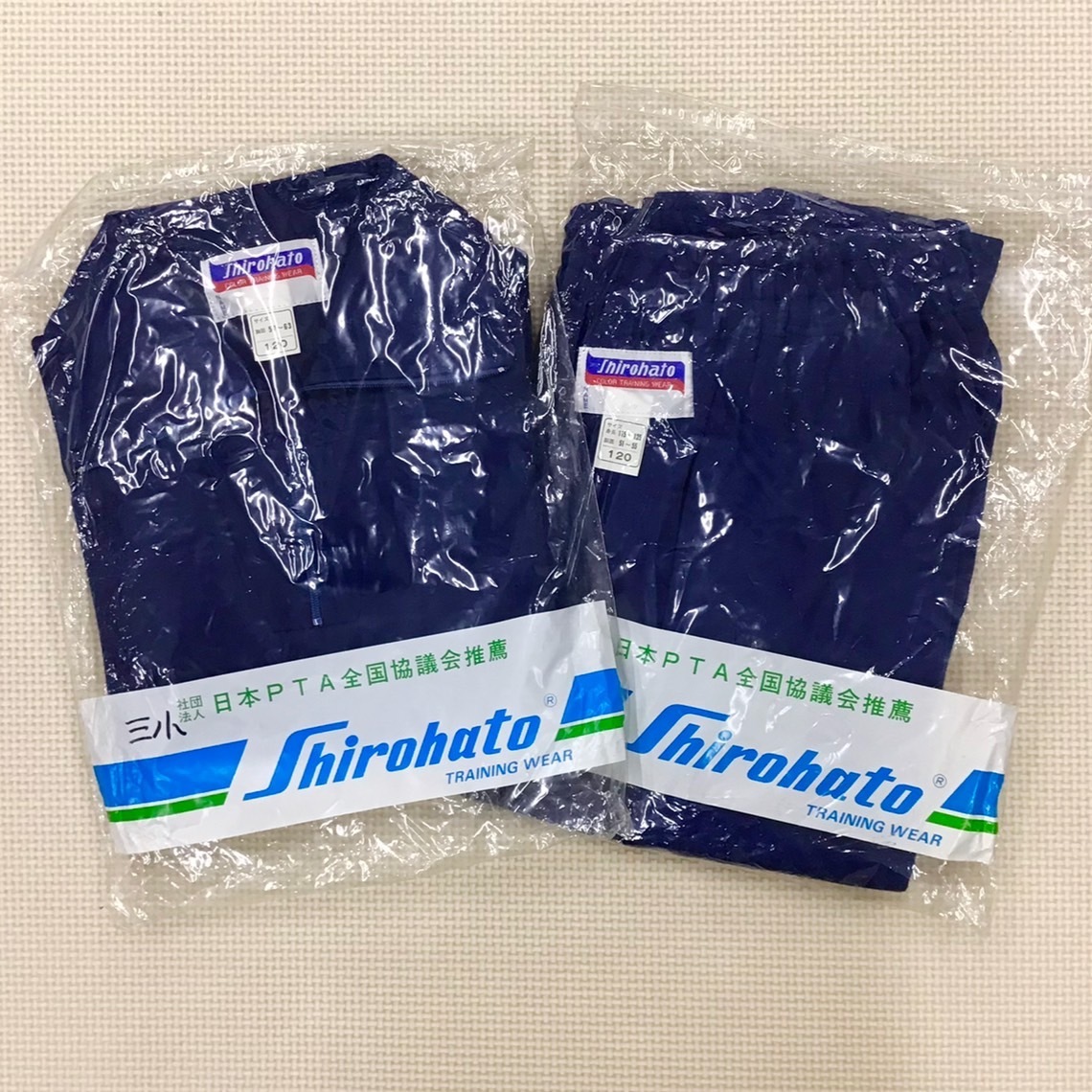 - (M)310 新品【Shirohato】シロハト トレーニングシャツ ロングパンツ サイズ 120 上下2点セット/レーヨン/無地/紺/児童/小学生/日本製