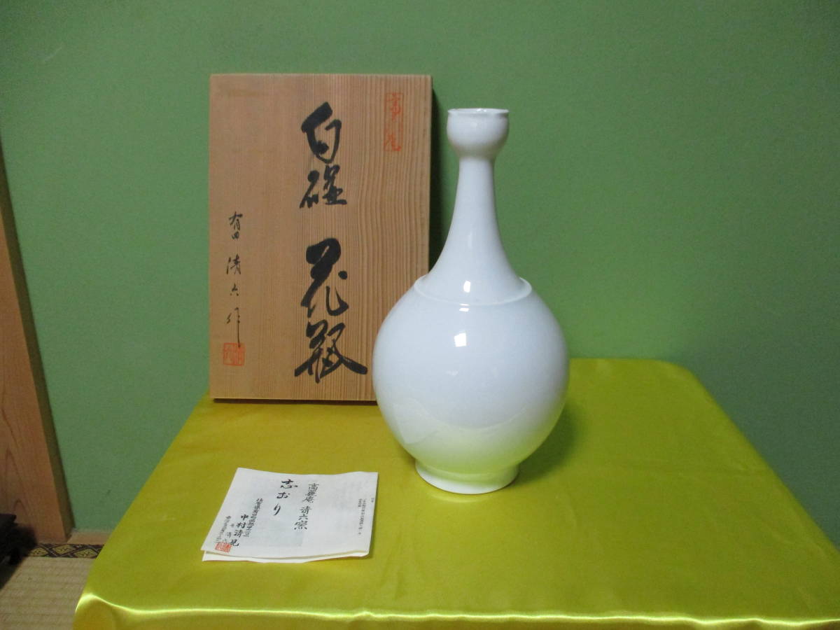 - 中村清六【佐賀県重要無形文化財】白磁花瓶 共箱付 高羅庵