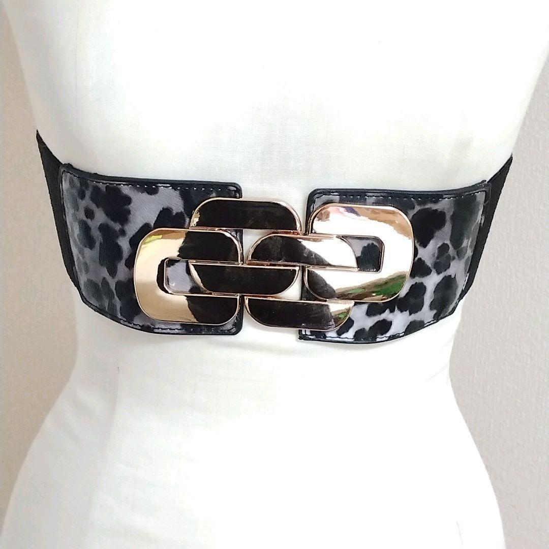 - 【ブラック】ヒョウ柄幅広ゴムベルトスカート ドレスゴールド