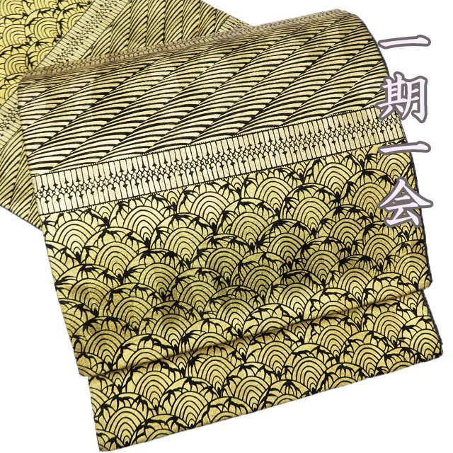 - 袋帯 未使用 正絹 フォーマル 仕立て上がり 六通 一期一会 青海波模様 黒色 金 きもの北條 A894-7