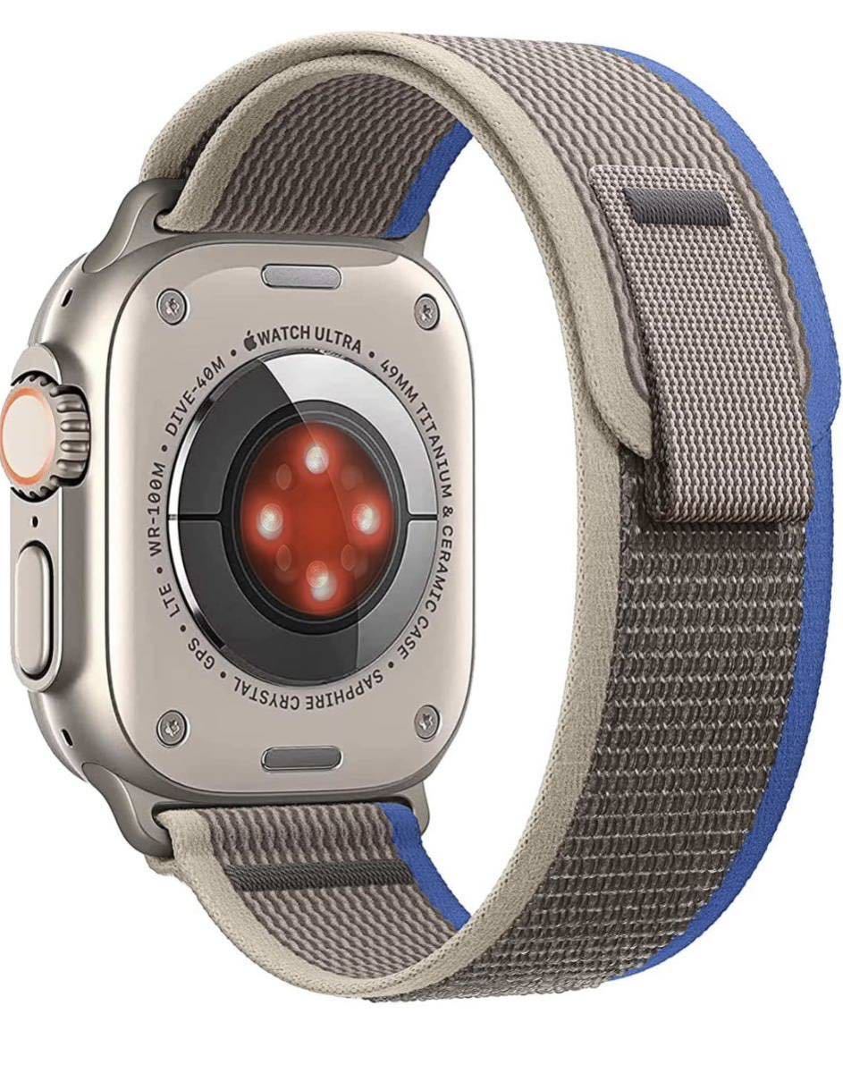 - トレイルループ アップルウォッチ バンド スポーツバンド 交換ベルト 軽量伸縮ソフト 42/44/45/49mm 全シリーズ対応(グレー/ブルー)