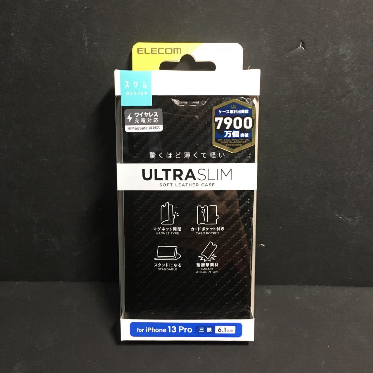 > 新品・送込み iPhone 13 Pro ULTRA SLIM 磁石付き PM-A21CPLFUCB(カーボン調ブラック)