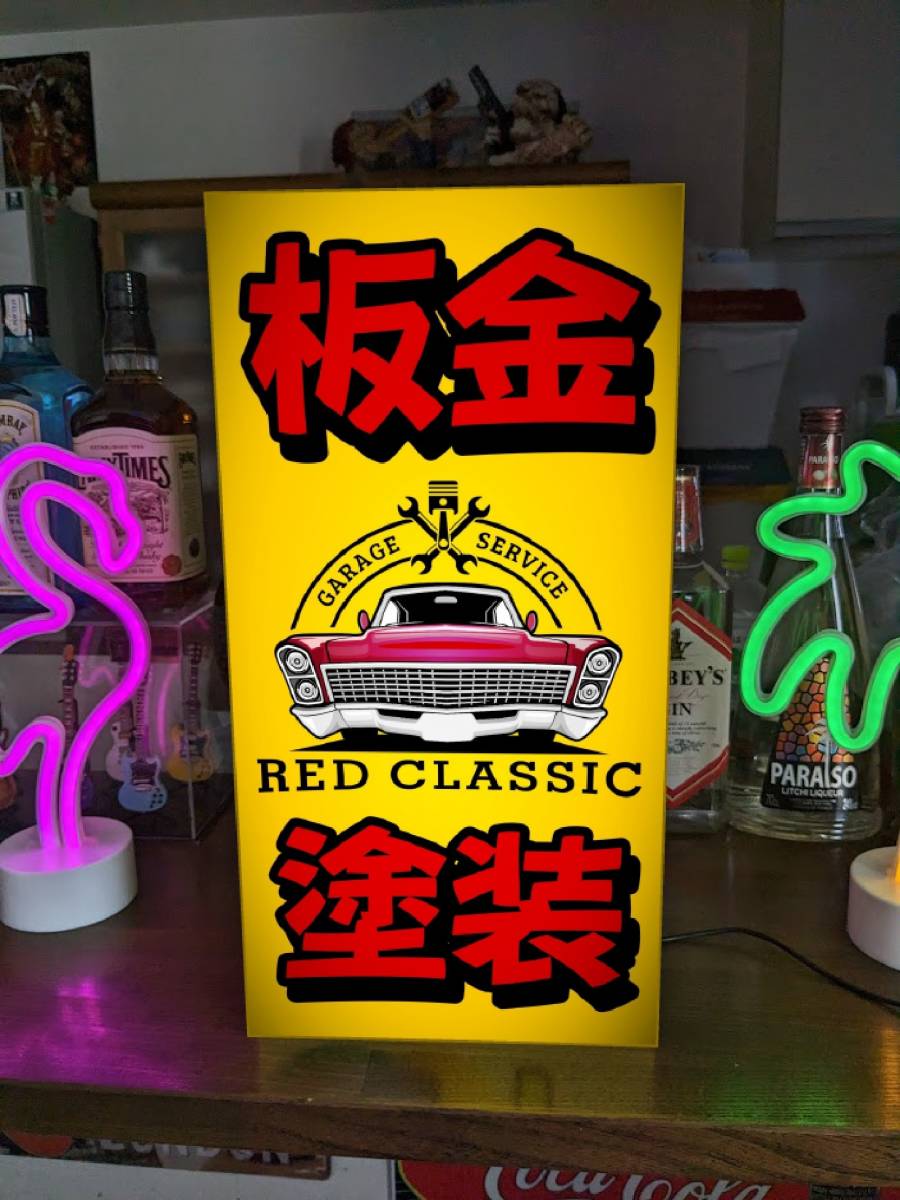 - 【Lサイズ】板金 塗装 車検 受付中 車 カーショップ ガレージ 店舗 カウンター サイン ランプ 看板 置物 雑貨 ライトBOX 電飾看板 電光看板
