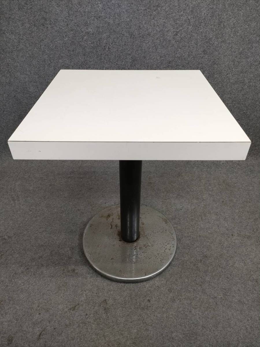 - 白四角テーブル 縁白 台座黒 幅 48.5cm 厚さ 4.5cm 高さ 53cm