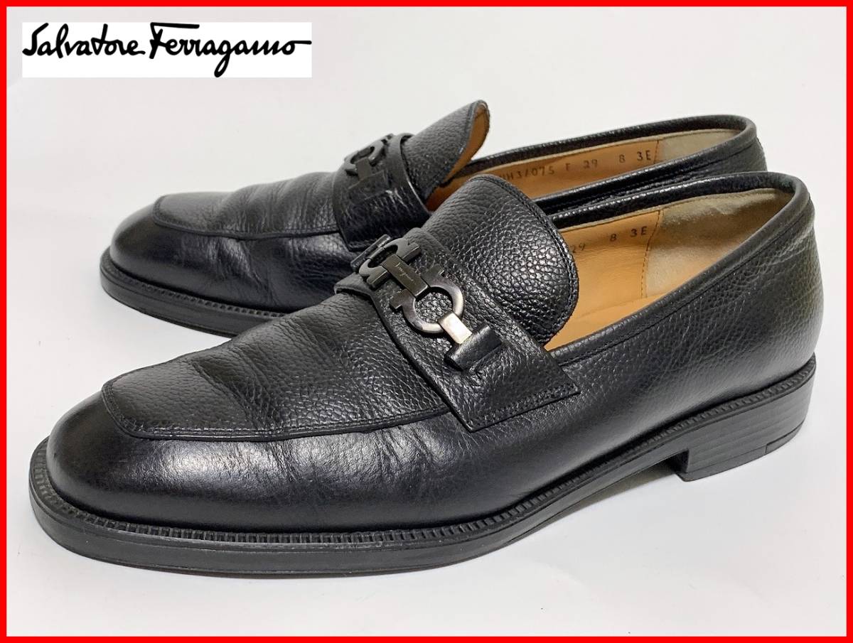 > 即決 Salvatore Ferragamo フェラガモ 8≒26cm ローファー 黒 ブラック メンズ C