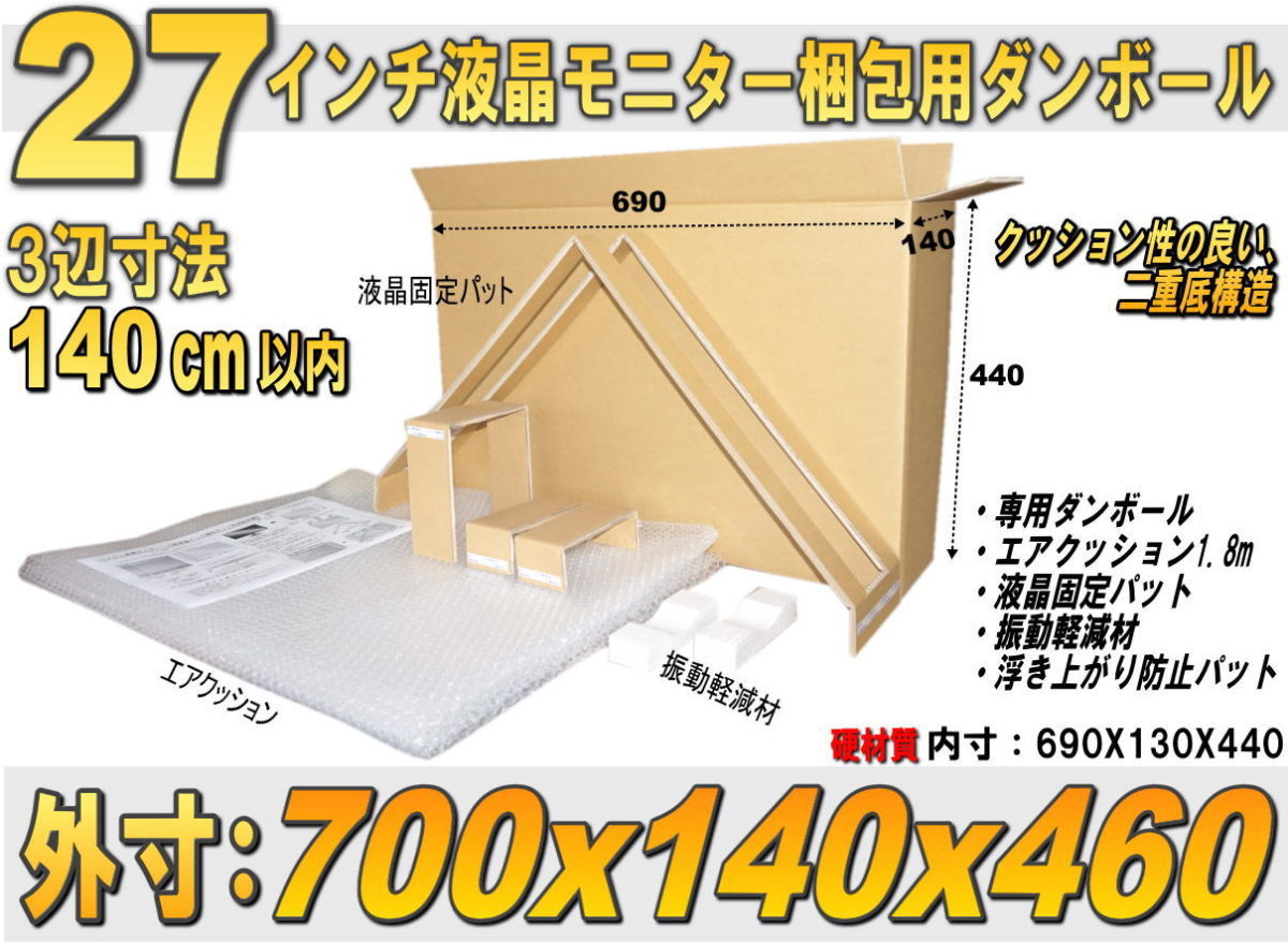 - 27インチワイド液晶モニター(小型液晶テレビ)梱包用ダンボールエアクッション振動軽減用緩衝材セット