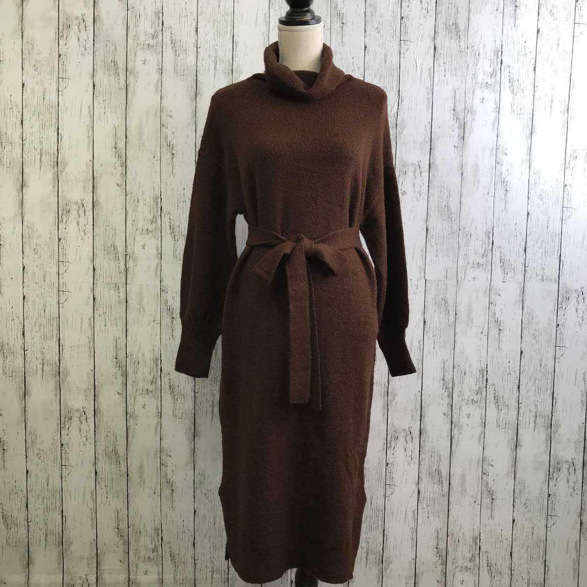 > FREE’S MART フリーズマート タートルネックニットワンピース FRサイズ ダークブラウン ひも付き S12-273 USED
