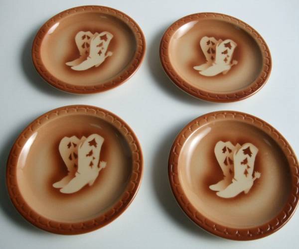 - カウボーイブーツ柄 皿 プレート 4枚セット/ビンテージ US雑貨