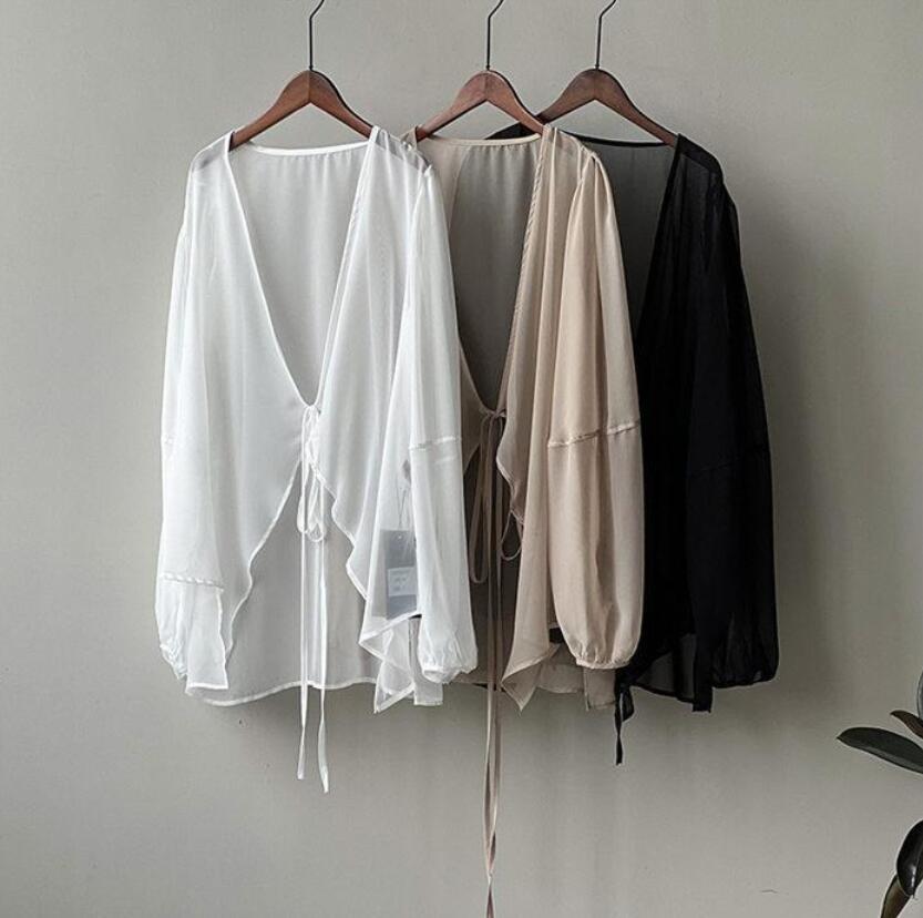 - レディース カーディガン 羽織り 長袖 薄手 シフォンカーディガン 夏 開襟シャツ アウター ビーチ 日焼け止め 3色選択