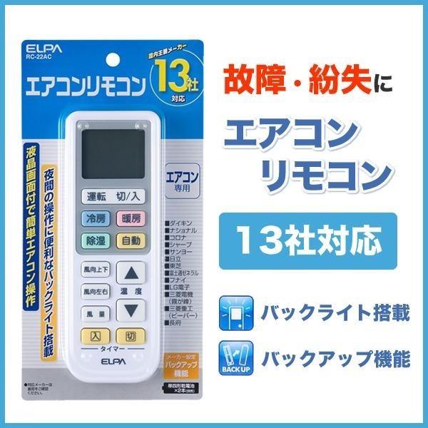 - 新品2-202・エアコン用リモコン エルパ エアコンリモコン RC-22AC