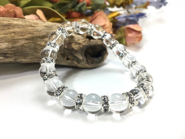 - 水晶 パワーストーン ブレスレット 天然石ブレス 10mm メンズ・レディース (ロンデル:シルバー) 開運 浄化 数珠ブレス