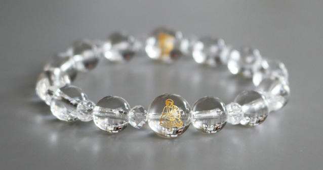 - 高野山開山1200年「空海」水晶ブレスレット・彫刻水晶2個 19.5cm