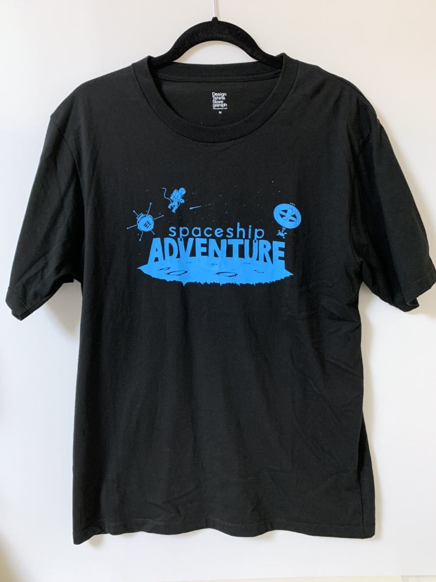 - 即決/graniph グラニフ spaceship ADVENTURE プリントデザイン/半袖/宇宙服/Mサイズ/ブラック黒/T shirt/Tee/USED/保管品