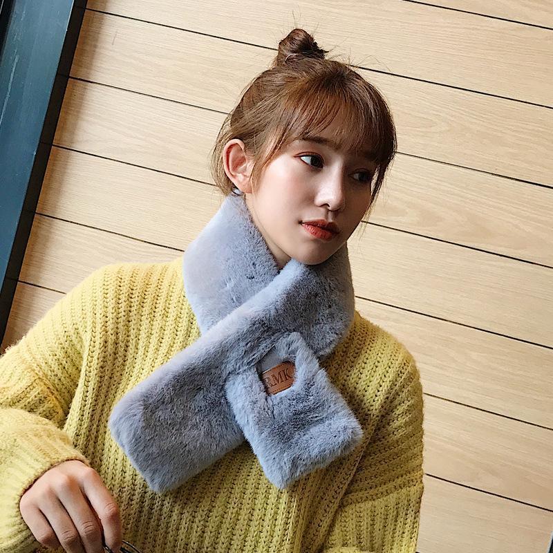 - 【グレー】ティペット - マフラー エコファー 無地 秋 冬 防寒 暖かい