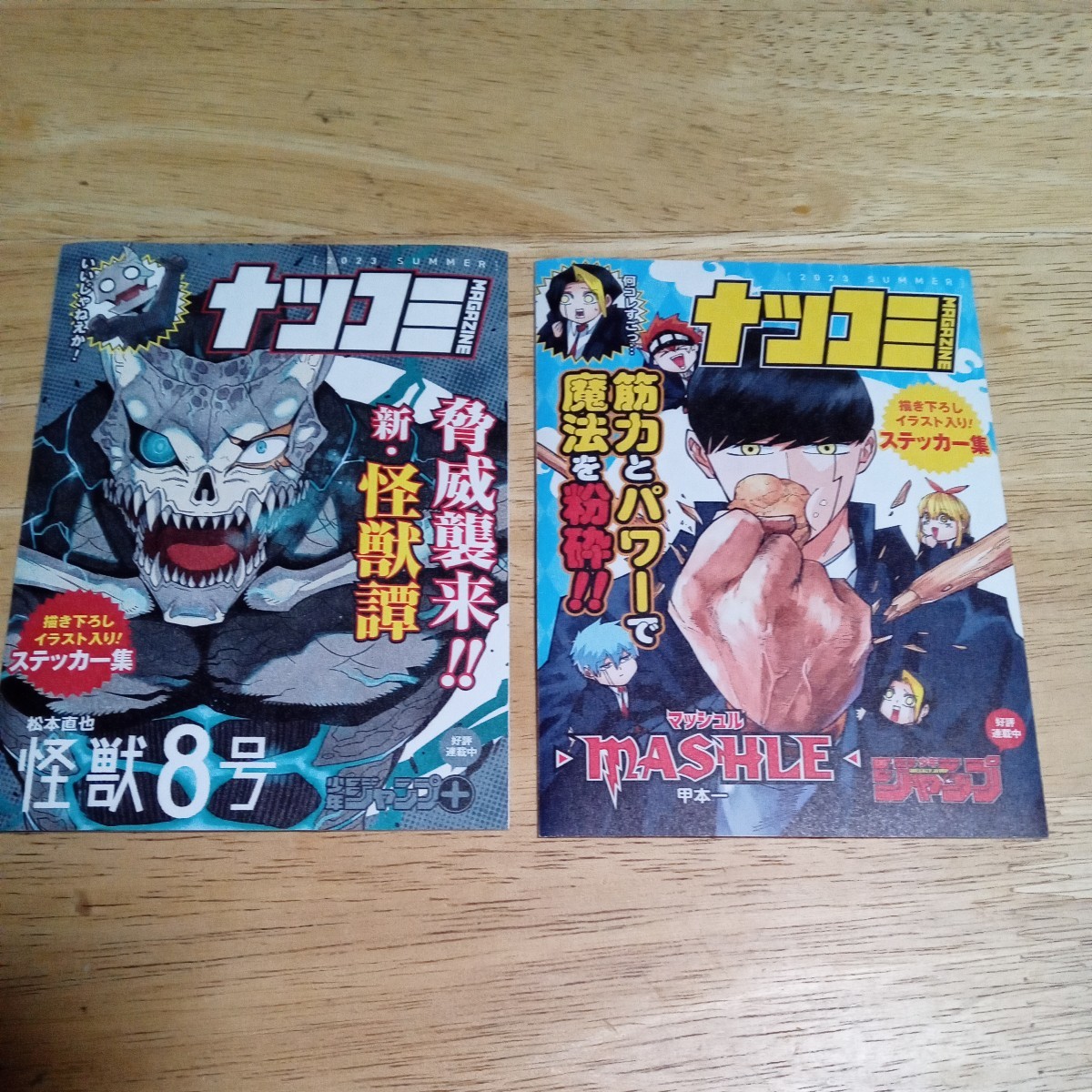 - ナツコミ2023 集英社 描き下ろしイラスト入り、ステッカー 怪獣8号、マッシュル 2点セット 新品