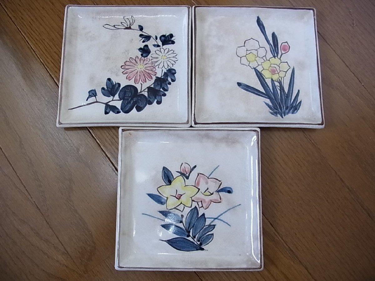 - 【蔵出し】 銘々皿 3枚セット 3種の花柄 サイズ/11.5cm
