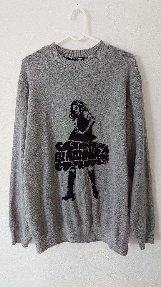 > ヒステリックグラマー HYSTERIC GLAMOUR ヴィクセンガール VIXENGIRL ニットセーター グレー サイズL 送料無料