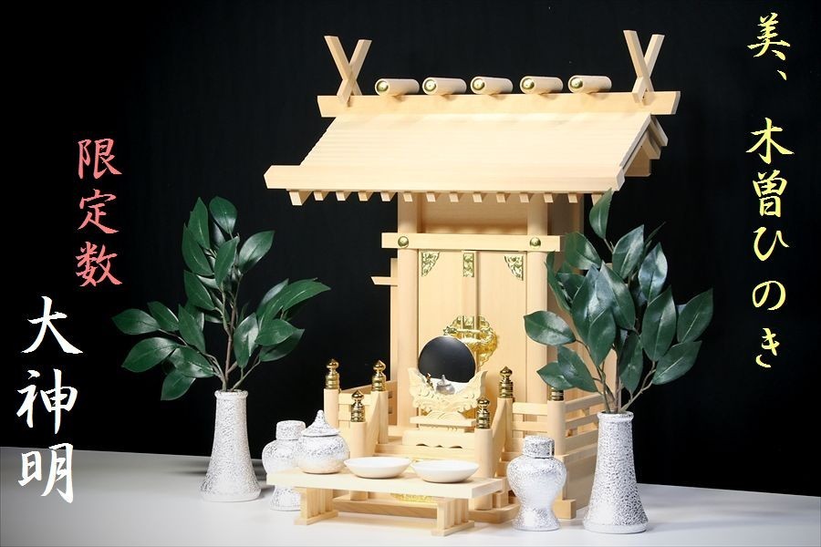 - 神棚 一社 セット ■ 限定 大神明 金と銀の輝き 銀色神具セット 美・木曽ひのき