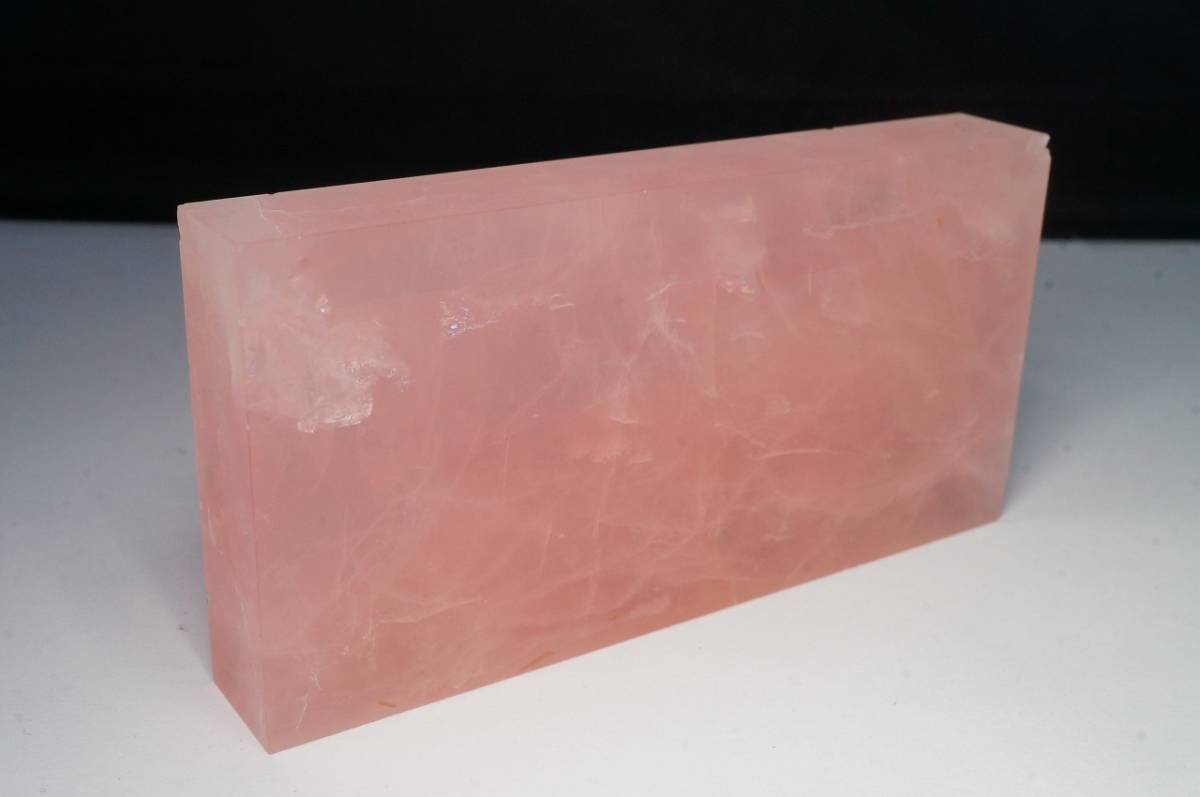 - 希少!上質品!ピンクが綺麗な上質ブラジル産ローズクォーツ研磨原石欠けあり【文鎮や飾り台に】(紅水晶)101g