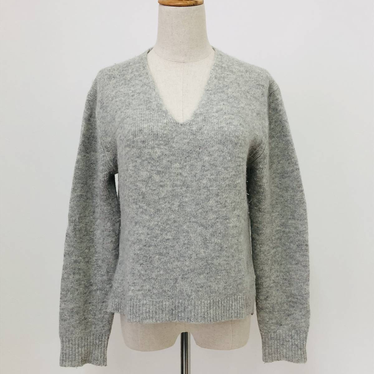 > k0387 ROPE ロペ ニット 長袖 Vネック 毛混 アンゴラ混 ふわふわ 冬 M グレー レディース シンプル ナチュラル エレガントガーリーチック