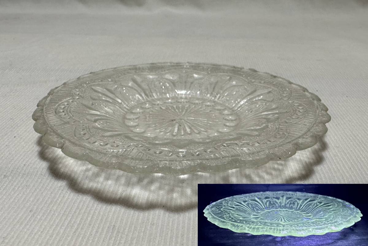 - ・ レトロ ガラス 器 ★szy48 豆皿 小皿 ウランガラス プレスガラス 明治 大正 昭和 気泡ガラス 骨董 グラス アンティーク ビンテージ