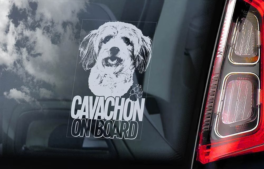 > ◆キャバション ① キャバリア x ビションフリーゼ ミックス 外張り カーステッカー 160x100mm 外貼り カー ステッカー シール 犬D1 3967