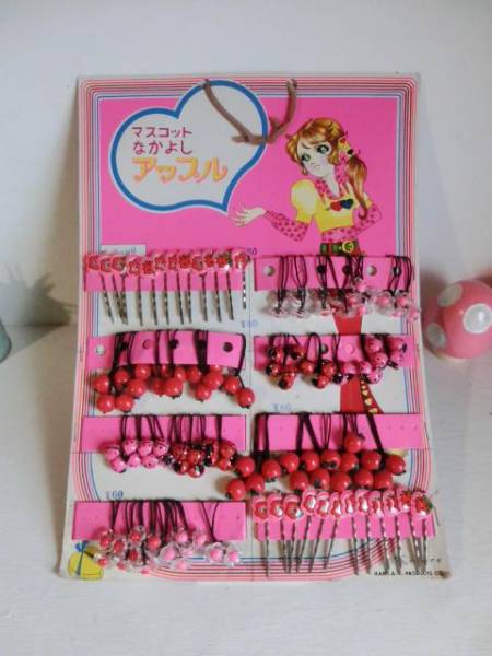 - レトロビンテージファンシー雑貨*マスコットなかよしアップル ヘアアクセ☆コレクションディスプレイ