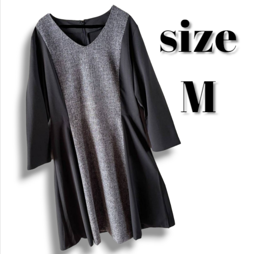 - 【新品・未使用】フォーマル シンプル ワンピース ひざ丈 Mサイズ ゆったりレディース 妊婦 体型カバー 服 ■タグ付き■