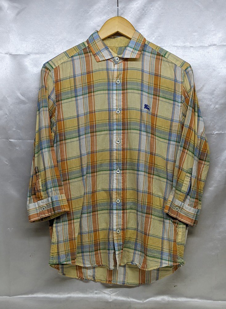> BURBERRY BLACK LABEL バーバリー ブラックレーベル マドラスチェック柄 7分袖シャツ サイズ:2 カラー:イエロー