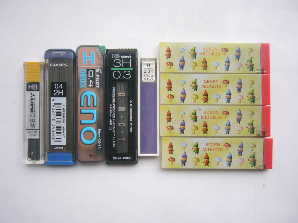 - シャープペンシル 替え芯(0.3・0.4・0.9など)セット/「0.3 /3H・H」+「0.4/2H・H」+「0.9/HB」+「SEVEN MIDGETS/?」×4