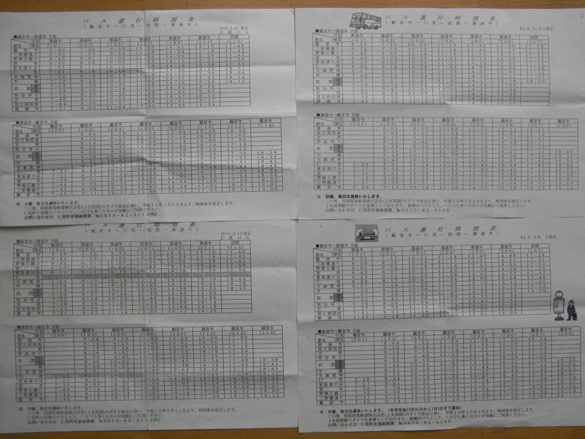 - 4枚/仁尾バス バス運行時刻表(観音寺~仁尾~詫間~善通寺) 平成11年~平成15年 4枚