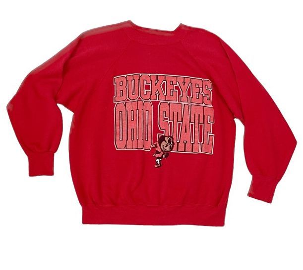 > 90's 米国製 MADE IN USA スウェット OHIO STATE BUCKEYS オハイオ マスコット 1992 Hotline Design inc レッド XL位 [ta-0805]