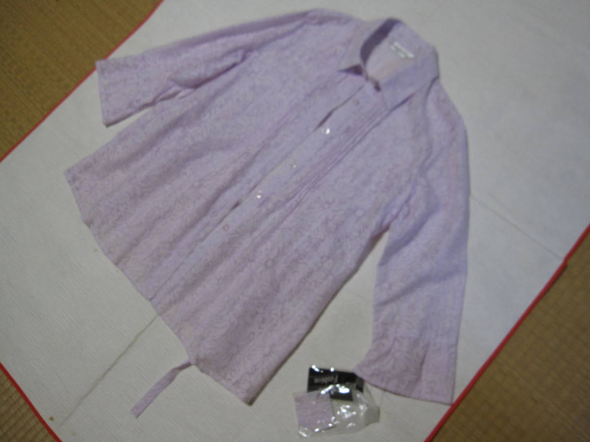 > 未使用タグ付 ブラウス オーバーブラウス 初夏、夏用 M 8分袖 薄ローズピンク系 ローン素材綿混 軽く透け素材 百貨店購入