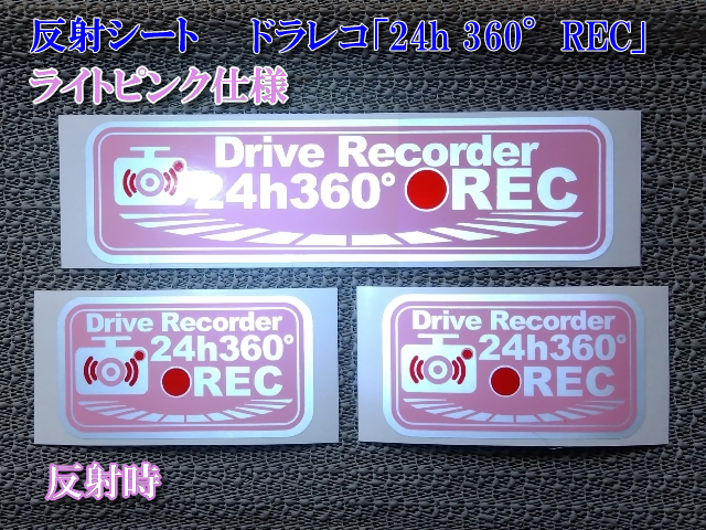 - ★ 反射シート ドラレコ「24h 360°REC」ステッカー ピンク3枚セット