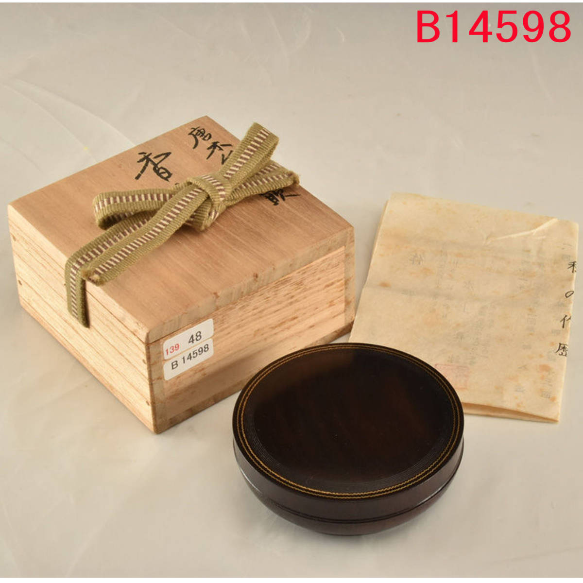 - B14598 水上荘詠 唐木線象嵌香盒:真作