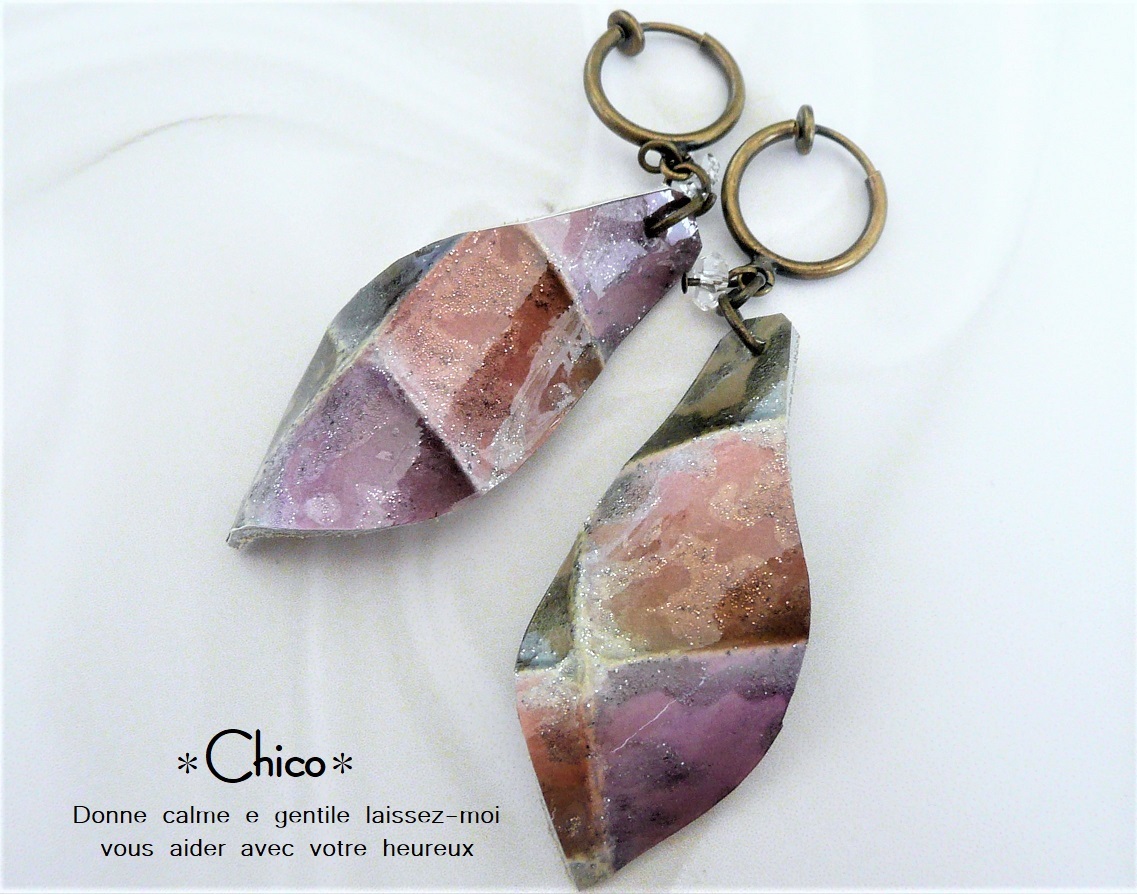 - ★ピアスに見える!★ フープイヤリング■リーフ 牛革型押し ラメエナメル マルチカラー ハンドメイドイヤリング♪ ★2点以上送料無料!★