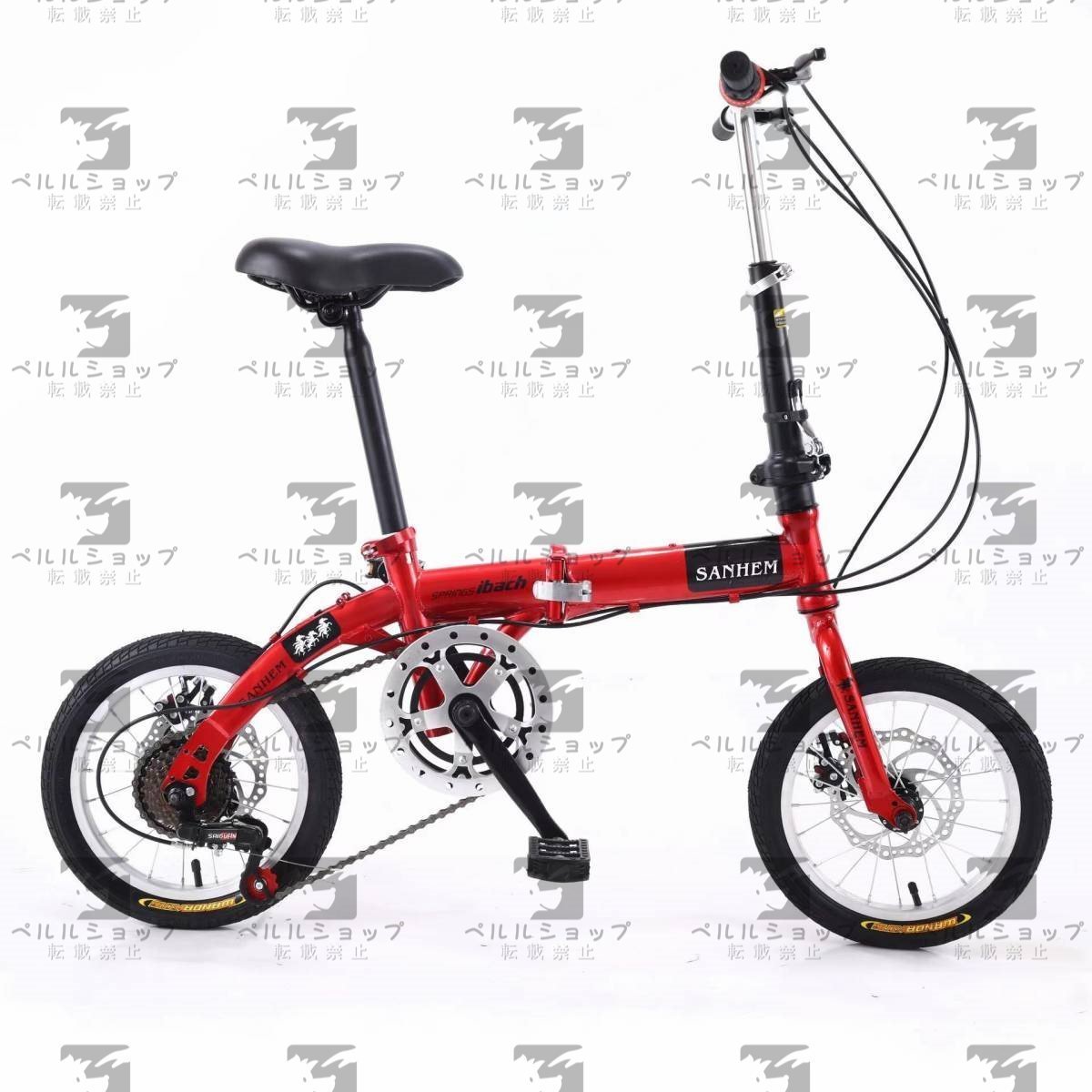 - 折りたたみ自転車 14インチ 6段変速 自転車 コンパクト 収納 軽量 ディスクブレーキ 大人用 子供用 通勤 通学 車載 プレゼント
